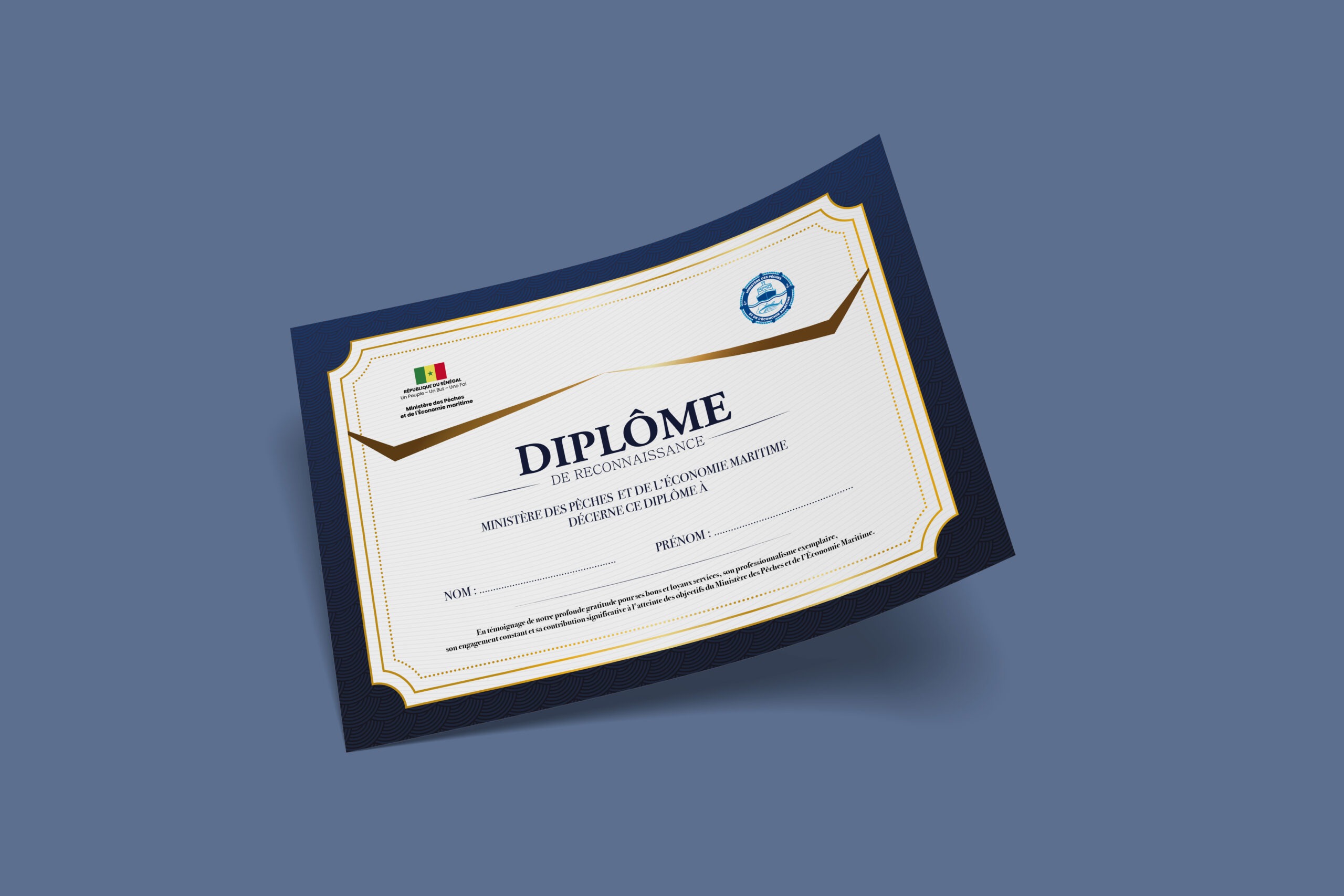 À travers cette réalisation, Eyaid’n Company a conçu un diplôme de reconnaissance alliant élégance, rigueur et prestige. La direction artistique repose sur une composition équilibrée, mêlant des éléments graphiques raffinés, une palette sobre et des finitions inspirées des codes officiels. Chaque détail — typographie, encadrement, hiérarchie visuelle — a été pensé pour valoriser l’importance de la distinction et renforcer le caractère solennel du document.