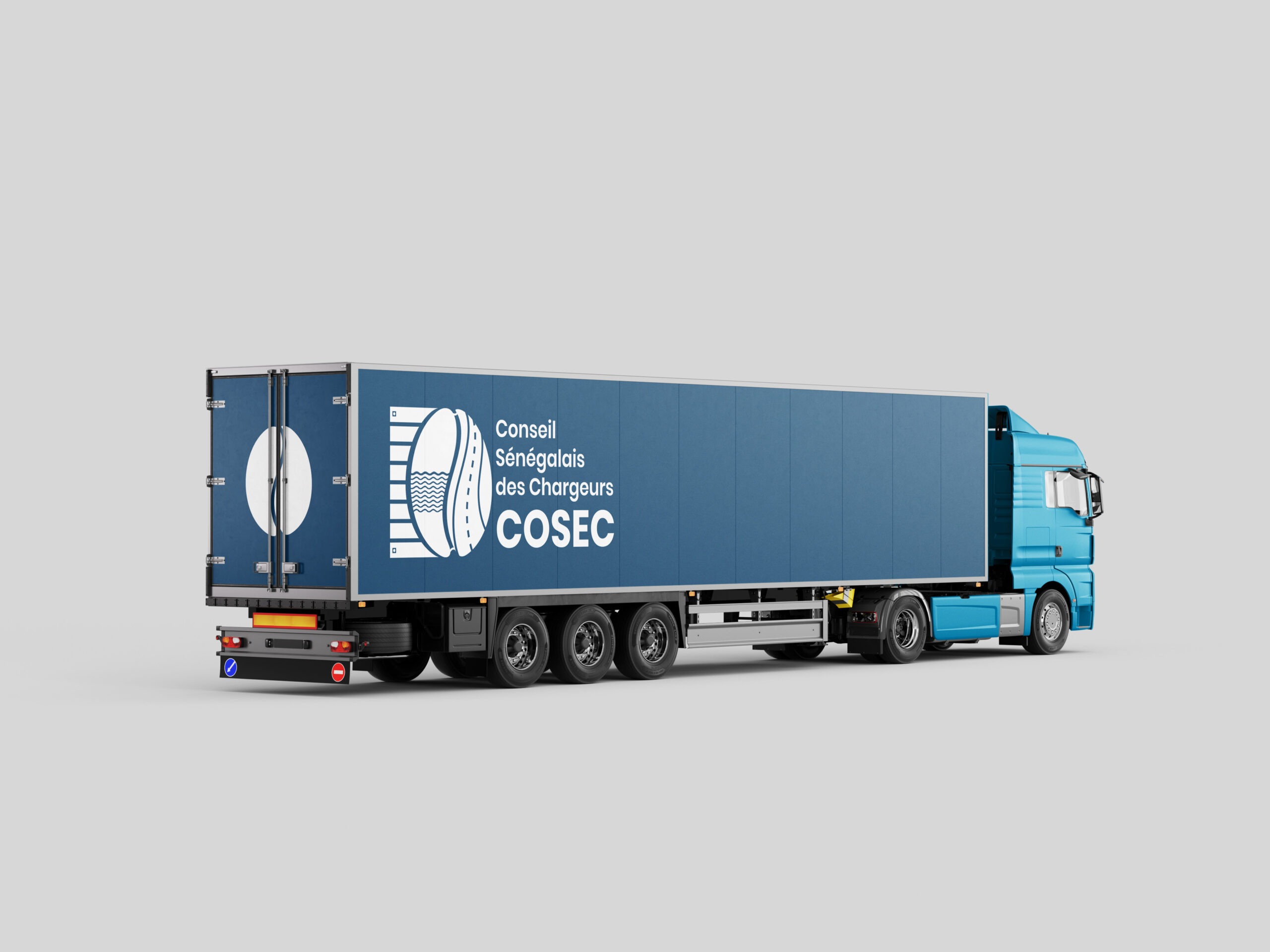 À travers ces déclinaisons, Eyaid’n Company a transposé l’identité visuelle du COSEC sur des supports logistiques à grande échelle, notamment conteneurs et véhicules de transport. Ce dispositif transforme chaque unité en un véritable support de communication mobile, assurant une visibilité continue sur les axes stratégiques et les zones portuaires.